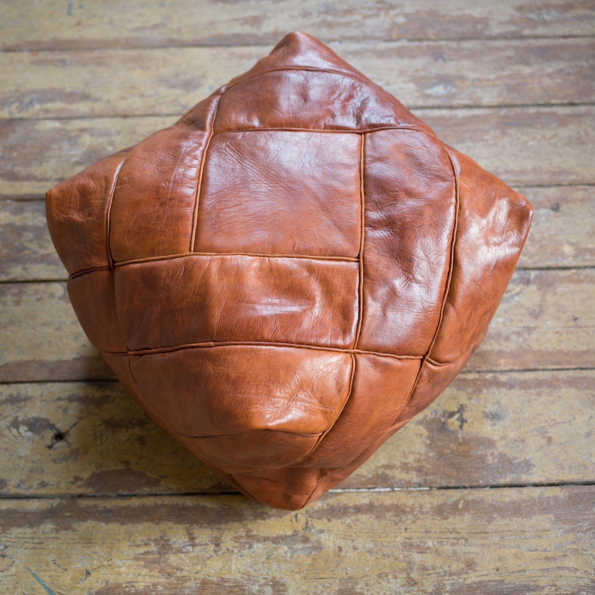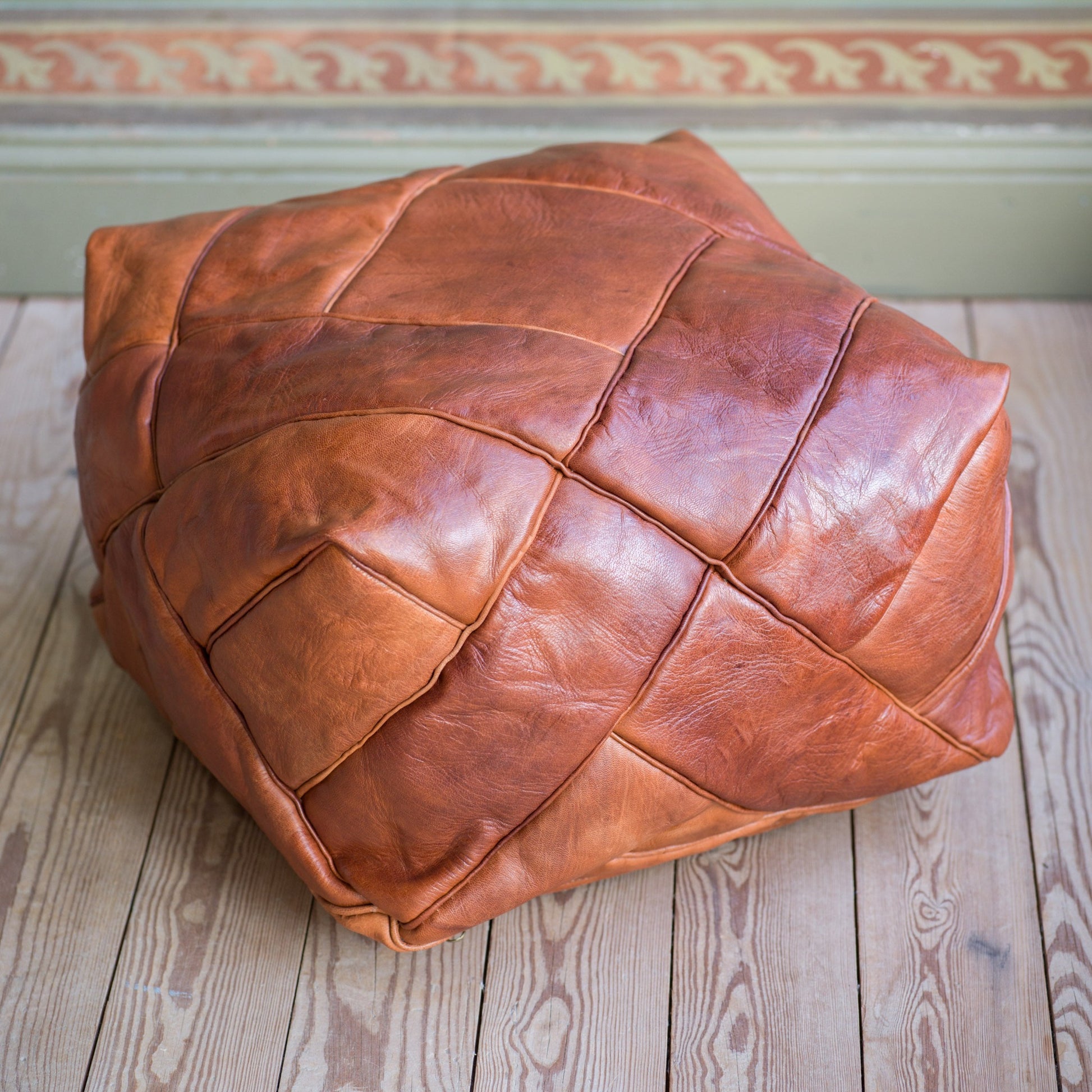 Våra högkvalitativa sittpuffar i skinn är handgjorda av skickliga hantverkare i Marrakech, Marocko.